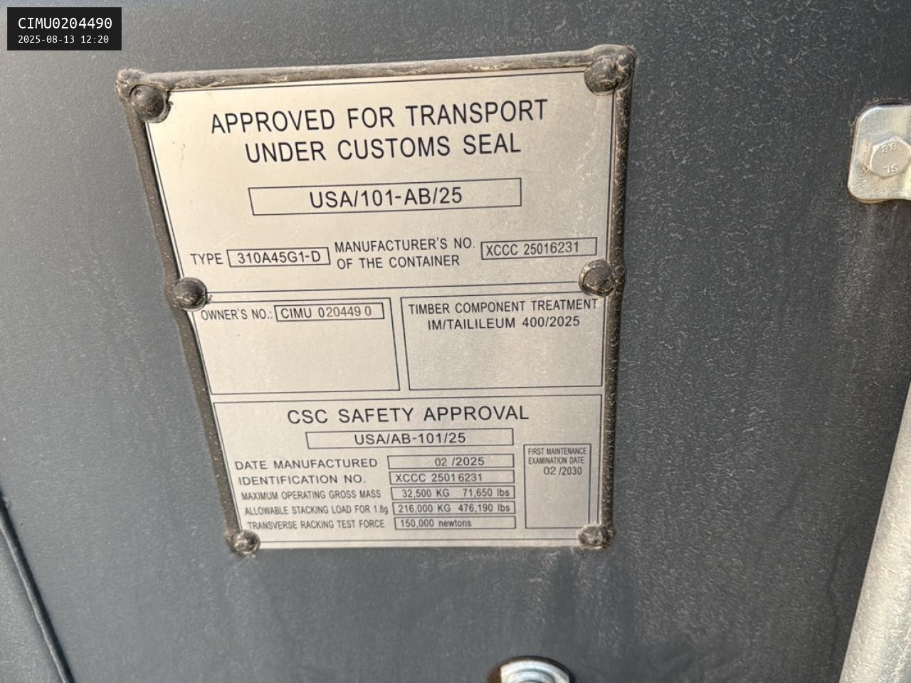Außenmaß Länge: 40' = 12.192 mm |
